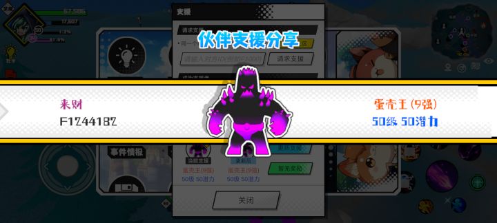 支援者:无月(F1243010)如果遇到困难,可以召唤我的宠物帮忙,召唤方法是进入地图后点击左下角的手机功能>支援>输入【F1243010】>就可以召唤我的宠物!我的宠物是蛋壳王(9强)50级 50潜力技能1:黑魔破技能2:黑魔破技能3:黑魔破技能4:黑魔破智慧配点:245初阶职业:鬼咒进阶职业:海神#超数据世界