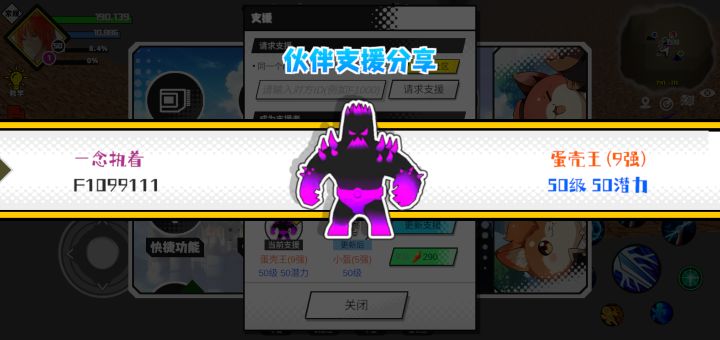 支援者:一念执着(F1099111)如果遇到困难,可以召唤我的宠物帮忙,召唤方法是进入地图后点击左下角的手机功能>支援>输入【F1099111】>就可以召唤我的宠物!我的宠物是蛋壳王(9强)50级 50潜力技能1:黑魔破技能2:黑魔破技能3:黑魔破技能4:黑魔破智慧配点:245初阶职业:鬼咒进阶职业:海神#超数据世界