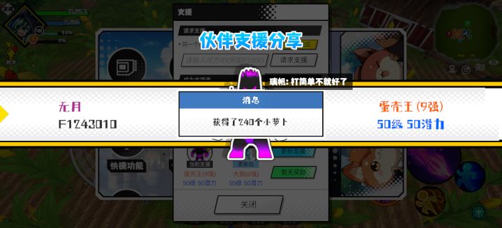支援者:无月(F1243010)如果遇到困难,可以召唤我的宠物帮忙,召唤方法是进入地图后点击左下角的手机功能>支援>输入【F1243010】>就可以召唤我的宠物!我的宠物是蛋壳王(9强)50级 50潜力技能1:黑魔破技能2:黑魔破技能3:黑魔破技能4:黑魔破智慧配点:245初阶职业:鬼咒进阶职业:海神#超数据世界