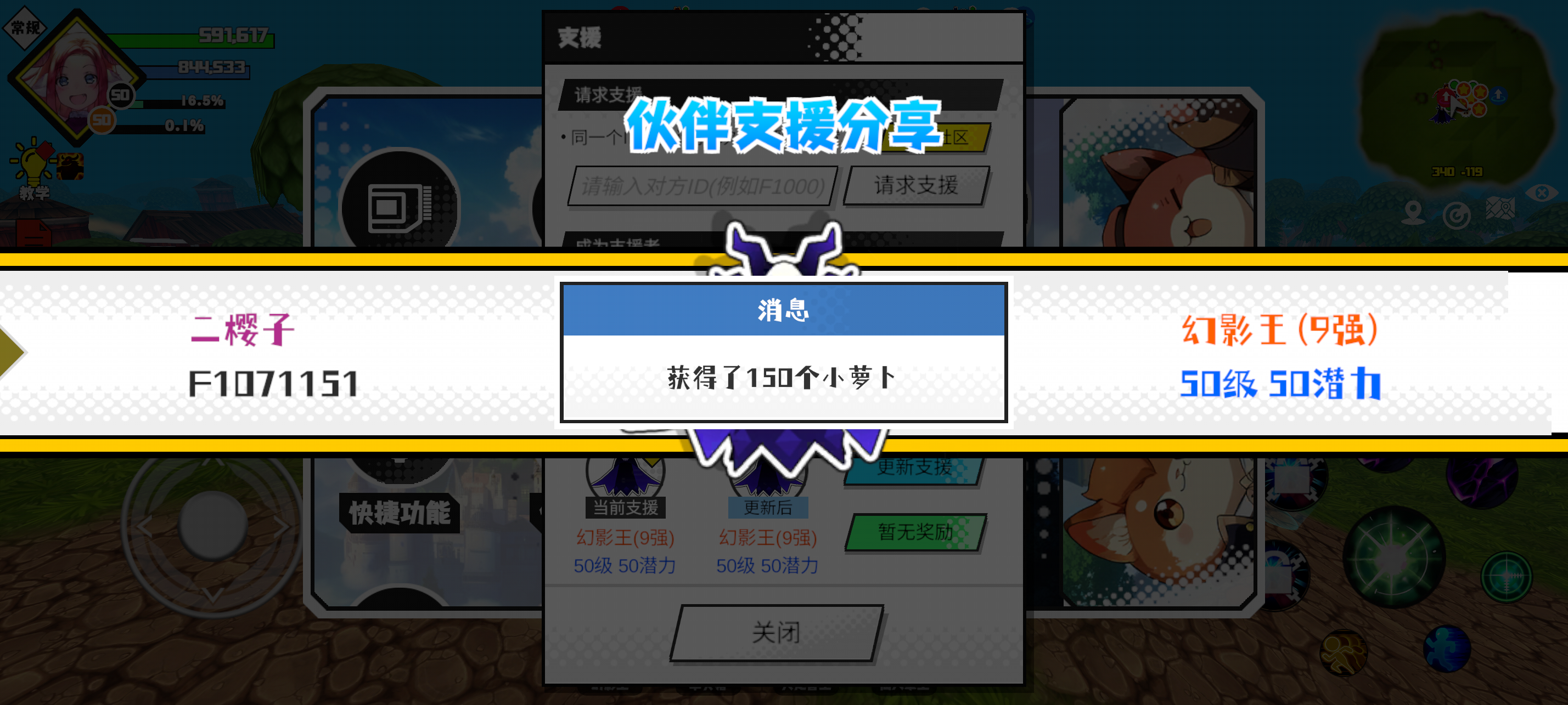 支援者:祀祀小天使(F1058829)如果遇到困难,可以召唤我的宠物帮忙,召唤方法是进入地图后点击左下角的手机功能>支援>输入【F1058829】>就可以召唤我的宠物!我的宠物是蛋壳王(9强)50级 50潜力技能1:黑魔破技能2:黑魔破技能3:黑魔破技能4:黑魔破智慧配点:245初阶职业:鬼咒进阶职业:气宗#超数据世界