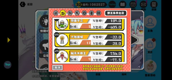 boss-电-风行鹰风-魔蝠火-魔蝠冰-箭盔泥王三脚怪——三脚兽暗-猫耳蝠——猫耳蝠王冰-翠蜂怪——翠蜂王暗-小蛇怪——暗-蛇怪——暗-蛇女王水-小蛇怪——水-蛇怪——水-蛇女王天气怪或者稀有怪电-虫兽龙风-风行鹰地图宠大全(不包含事件怪)总贴 - TapTap
