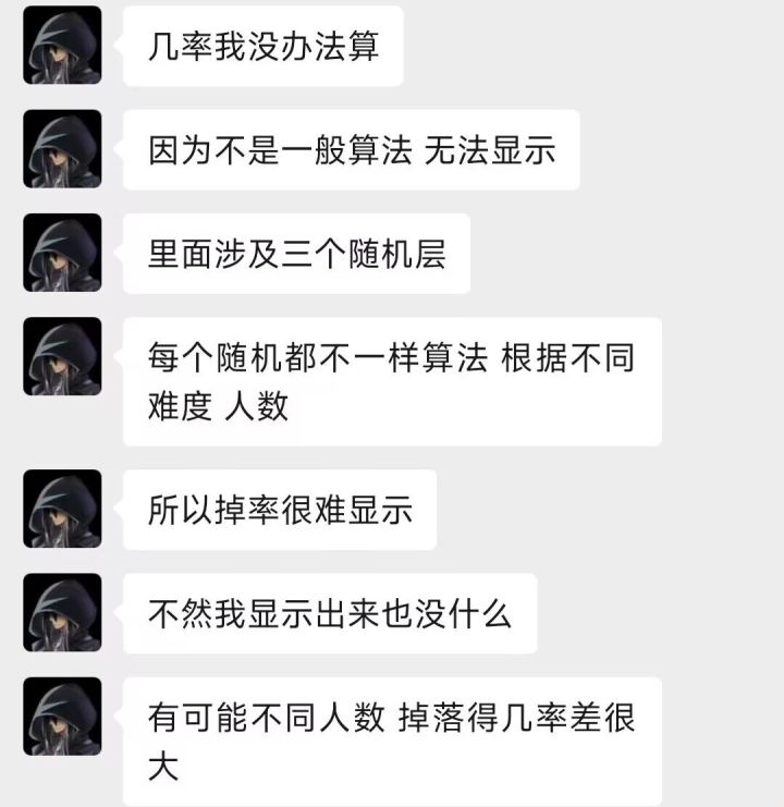 副本的掉率是三个随机层,算法都不同,第一个是掉率70%记忆30%道具,这个可以根据记忆等级降低记忆概率增高道具概率,但极限是多少不知道,只知道即便满级还是会出对应记忆。第二个是金色独特概率3%×10%×系统等级,这个系统等级不知道从多少算起,红色独特再×1%这个就是出道具里的基础掉率第三个是会把所有符合条件的装备放进道具池随机抽一个,也就是几中独特中随机抽一个,也就是金色10%,红色1%,紫色