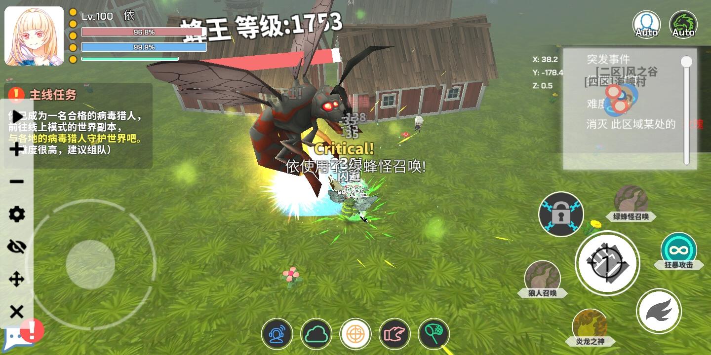 方法就是用依(至少有几个好的气息),将蜂王抱到视频里这个位置,而且让蜂王刚好可以打到自己,蜂王召唤起小蜜蜂会被墙卡住一段时间,这样可以让我们的攻击目标一直锁定在小蜜蜂上,而小蜜蜂一段时间之后就会卡到你面前被你砍死,然后蜂王召唤新的小蜜蜂循环往复,这样的方法可以让我们一直攻击不到蜂王刷小蜜蜂