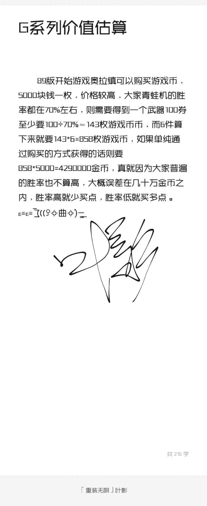 大家好,这里给大家来讲一下G系列武器的利与弊以及武器解析。在这个游戏的老版本以及到现在的最新版本,G系列每一个装备在玩家的心目中都是有一定的地位的,但是凡事都有利弊两端,而G系列存在的弊端是什么呢,首先讲一个:获得这个系列的武器十分耗时间,首先不讲小怪掉落游戏机硬币那低得可怜的概率,而且就算看广告的话,那概率也是比较低才能得出游戏机硬币的,所以建议大家如果有需求去升级其他装备或者打怪的零件的话,就