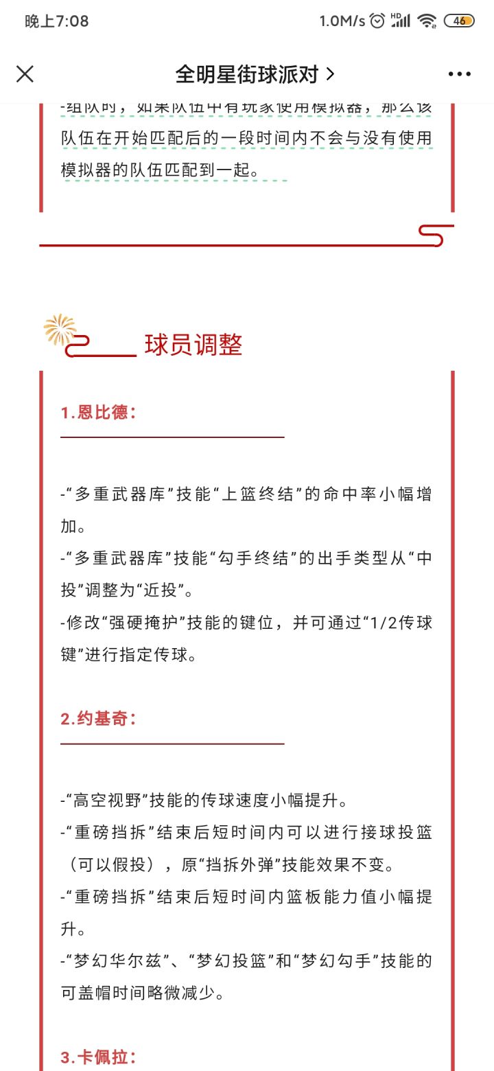 这个挡拆反馈了多久都没改回来以前的范围。公告都没写过,还说不暗改?恩比德本来就不是很强势,这个范围改了有什么意义?#全明星街球派对#暗改