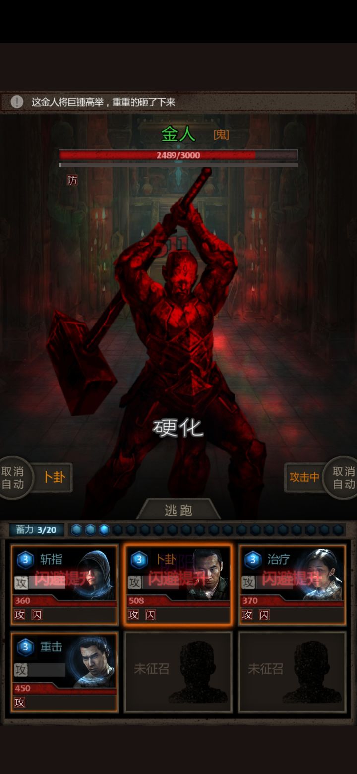 第一次玩这种类型的游戏,刘氏boss那里卡了一下午,才发现是自己笨蛋直接莽没削弱的boss晚上看了攻略用四爷和花哥一直都差一点,过不了终于在自己琢磨下用血牛打法过了,也是服了我自己马头人嘲讽禁boss技能,死亡有概率触发致命一击,配合喇嘛复生,其他人普攻,硬生生磨死了回顾发现很多资源浪费了,买了挺多用不到的(镜子和角色)。不过自己琢磨也挺有