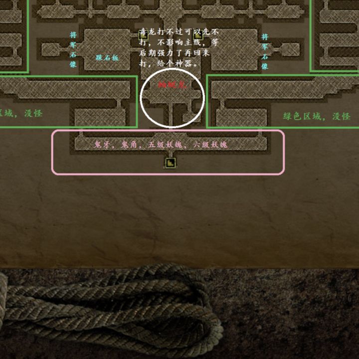 秦始皇陵天宫门口,粉色位置在这里刷,只有剑兵,盾兵,人物四星后不用带火把、干粮,直接空背包进,阵容这样升级前面两个放妖魂加经验,后面放鬼角加倍率,鬼牙其实可以不捡,可以多刷很多材料