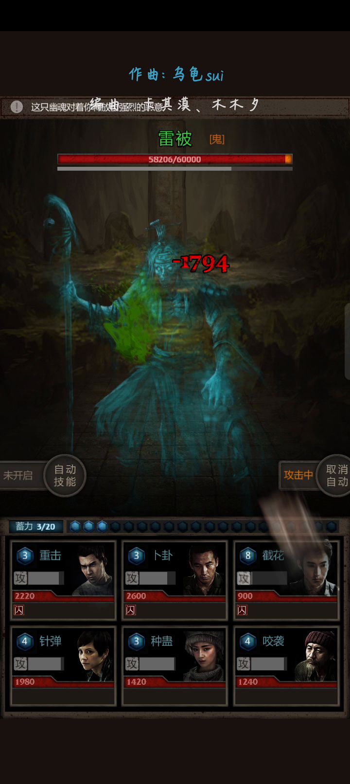 优点很明显,速杀,一定要盘古镜 这是以前录的,花哥+2吕峰+2其他全1 优点省粮省酒无视毒无视伤害罐子 鬼兽层无脑上蛊就行 出门解药酒完全不需要带,打boss时做个清风丹就行,刷小怪无敌的 妖兽层这套也能打,但是一定要十级角木镜 螃蟹虽然防高但是速度慢,角木加上九妹的速度足以让花哥一直打断 缺点是唯惧miss,螃蟹一下锤三个试过绑马没有用,毁灭性伤害还不如胡东中蛊的普攻 而且吕峰在苗妹的强化下也是封神了 攻击翻倍之后再造成百分之两百的伤害(剩下二十由镜子加成),比斩指牛的不是一点半点,除非遇到血量极高的boss,不然吕峰还是很好用的,一刀半管血不是梦 此组合除了打boss需要一点扛击打能力(打之前吃个干粮就行),其余都是来不及动手都能秒,因为攻击翻倍,所以打个小怪只要别花哥跟龙同时残,基本鬼兽层必过,虫的比较看运气,防高的怪,花哥跟龙别被打到就稳过了,被打到了还能九妹烧然后用胡东赌命(有成功过),但几乎不可能,夸父镜没啥要求,但是用这套角木最好十级 唯一麻烦的点就是虫的你不能自动技能,遇到螃蟹必g,螃蟹只能不停的截花,不能用其他技能 这个应该是目前魔窟里面最省东西的队伍了