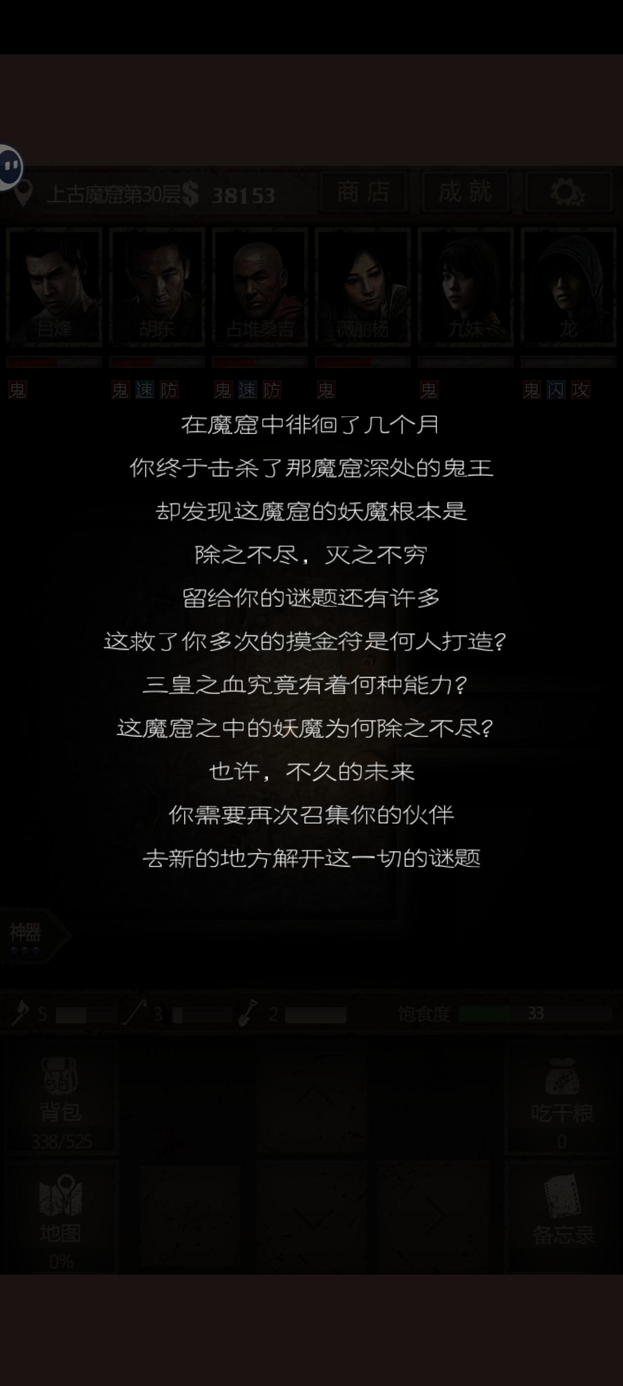 镜子:神农,五岳,地府(全部10级)药:我是直奔鬼王去的,没药材,只练了两个金刚散给胡东和桑吉,一个千钧散给龙,一人一个律鬼丹九妹放火,微利杨和桑吉全程盯着血量就行#浅评一下 #盗墓长生印