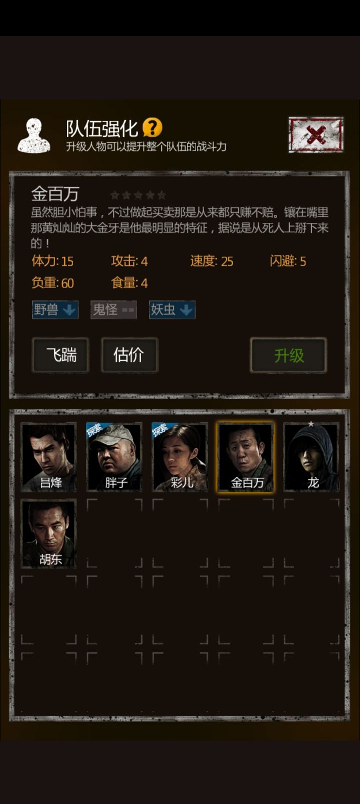 10.魔窟细节1.阵容推荐(我还做了别的阵容组合在另一个帖子)国家队(原型名字)吕烽 胡八一 鹧鹕哨张起灵 幺妹 吴邪陈皮阿四 Shirley杨 霍玲解语花 王凯旋国家队吕烽 胡东 赵启天龙 九妹 卢吉替补 四爷 薇力扬 针对 玲玲 花哥 胖子2.魔窟走路不回血(神农避疫镜跟卤鸡大发挥)3.魔窟没有探索度但是有地图总共20张没进入一层就是从这20张地图里面随机4.魔窟总