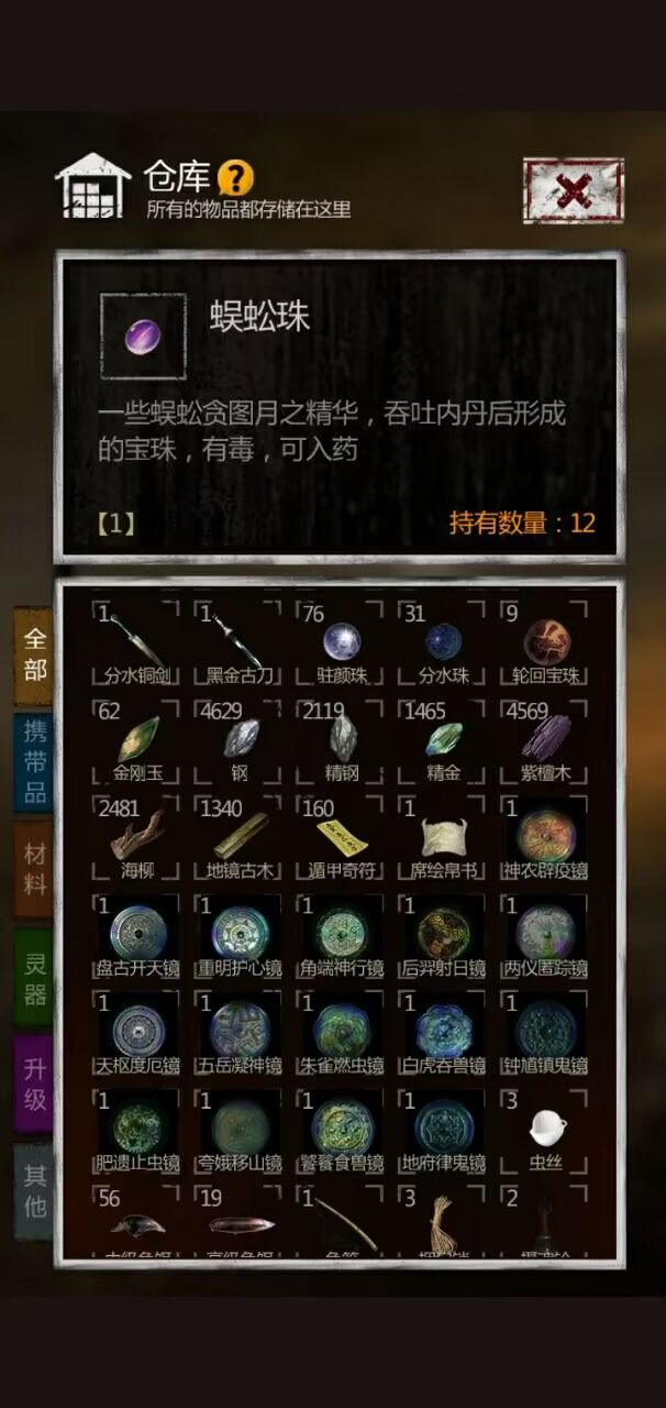 我以前也玩过,之后不是关服了嘛,然后我看见有个群里有人玩这个,我就想也玩玩,我玩的也可以了吧,两个星期左右,魔窟17层,但这个蜈蚣珠是干什么的,我好像没见过,是新出的吗