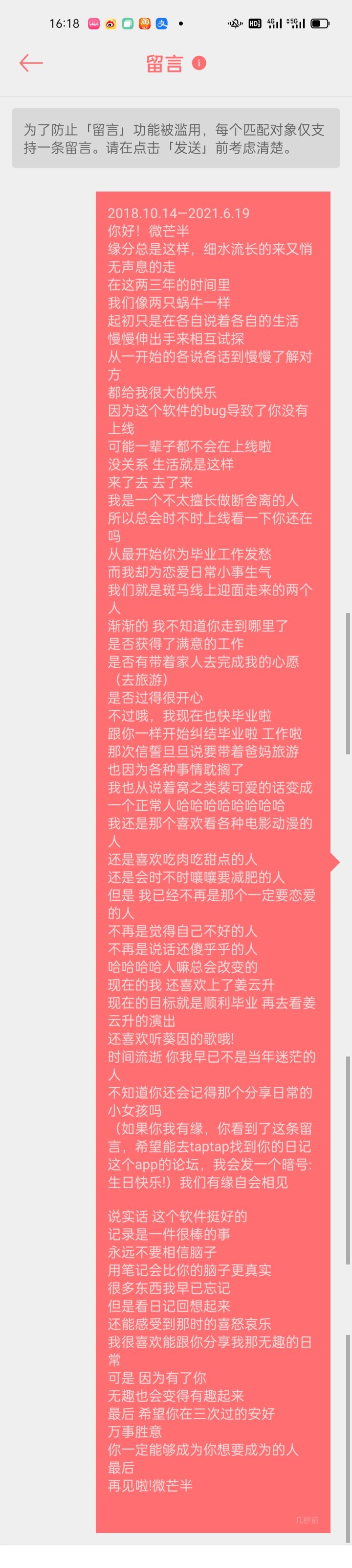 即便压力很大,大多数时候也总是在日记里传达一些积极的东西,包括学校和同学间各种故事,或者吐槽这吐槽那,虽然也有很多不如意的地方,但还是尽可能不让自己的糟糕情绪传递给别人(有机会的话还是希望能多诉说诉说,虽然不能解决实际问题,至少心里会舒服些)