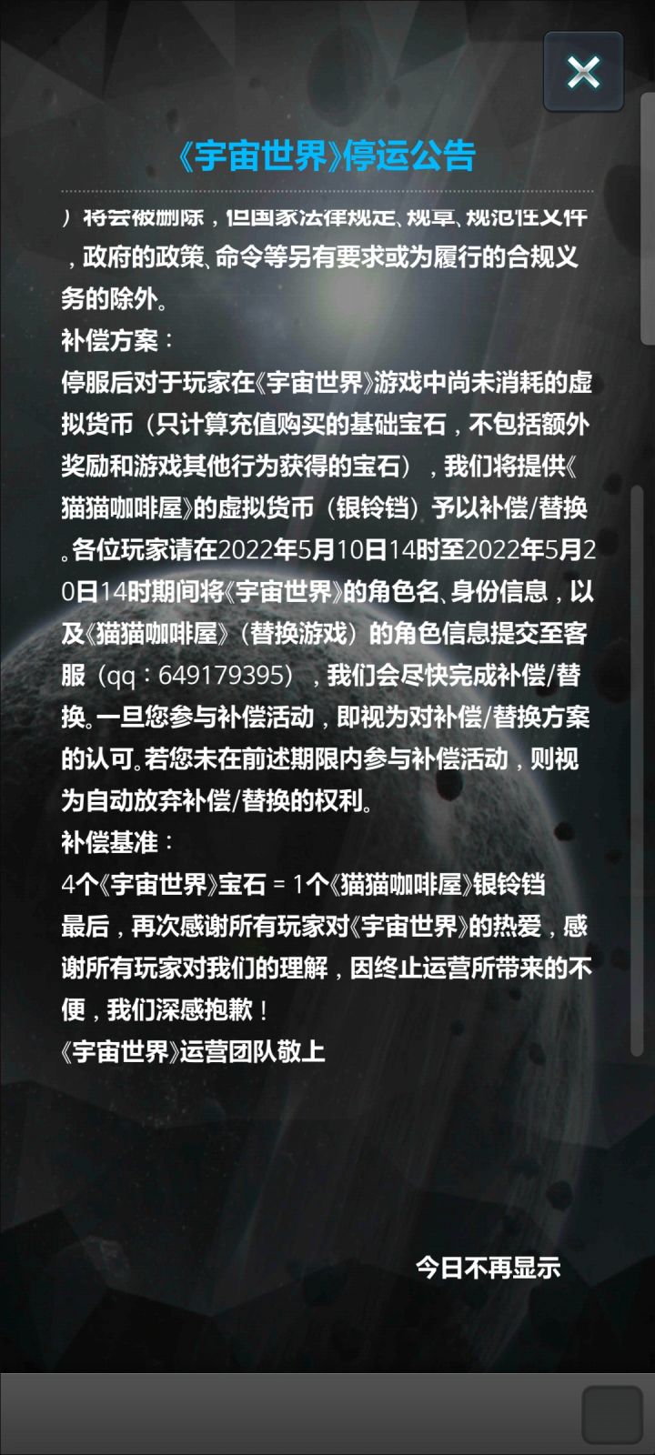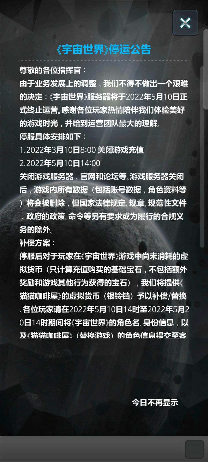 这游戏稍微更新一下不难吧 还就那个全力投入猫猫咖啡屋宇宙世界的氪佬氪几万几万的不少了。硬是不更新 连氪的点都无了,开放新游戏可以理解 但如果新游戏赚的没老游戏多 那官方还是关注一下宇宙世界这个游戏吧