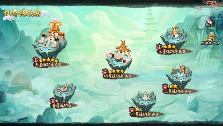 《神仙道高清重制版》中将原本枯燥的离线练功系统改为了练功房系统。玩家在练功房中可以额外获得大量经验,可帮助玩家快速的提升等级。玩家也可在练功房中挑战其他对手,证明自己的实力。玩家在通关玄机宫(4)后即可开启系统。练功房共分为6个房间,分别为:普通练功房、一星练功房、两星练功房、三星练功房、四星练功房、五星练功房五星练功房共12个位置,四星练功房共10个位置,三星练功房共8个位置,两星练功房