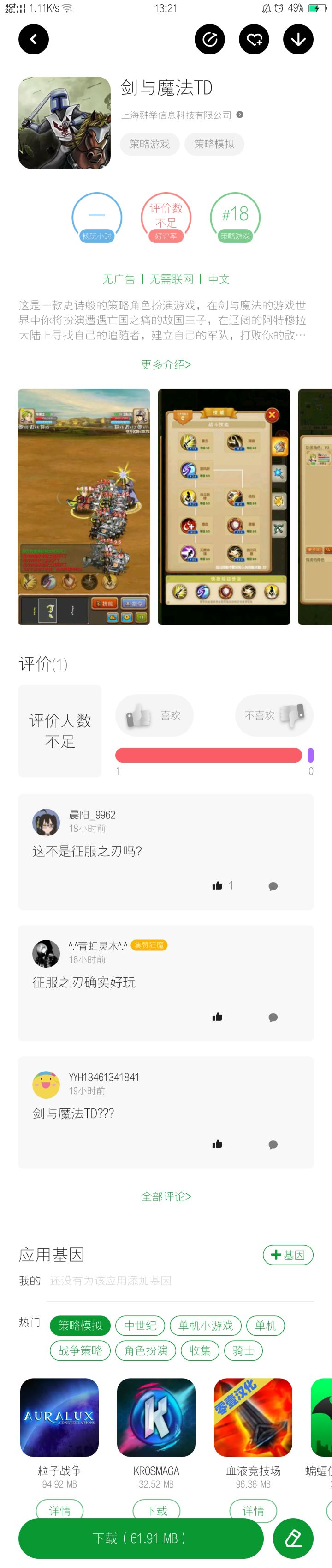 我的个人想法和意见,这款游戏是很不错的,可能是因为单人模式已经满足不了我了,所以我想提的意见是能否在单机的基础上加上局域网,可以两到三人一起游玩。