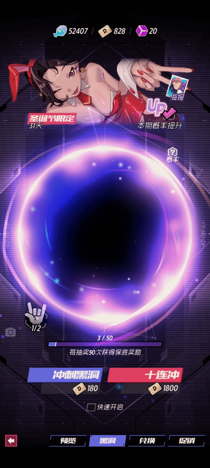 概率极其之低,都是大保底!!!跟无底洞一样!!最离谱的还歪的一笔,5万才出了3件,上衣还重复了一件,武器也是重复,瞬间想卸载了!!