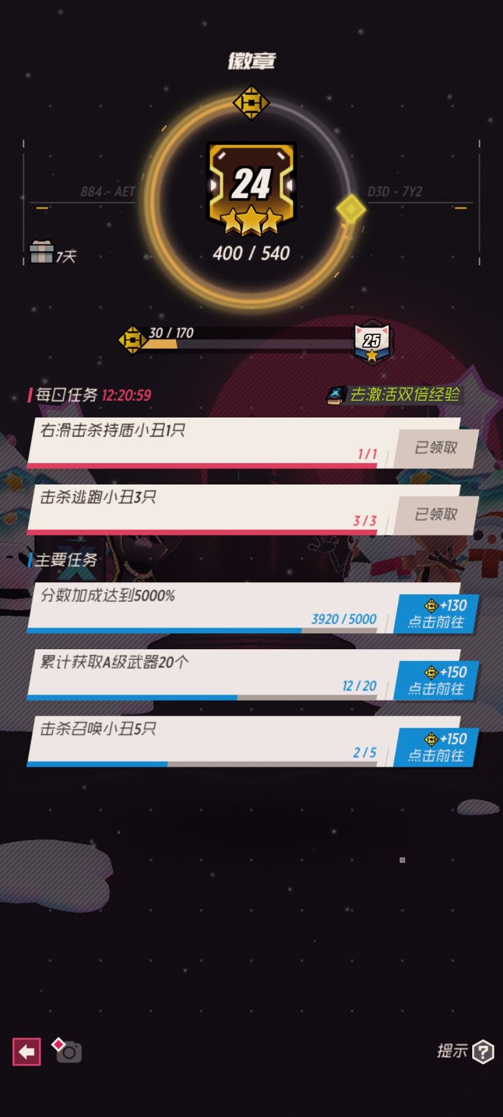 徽章24级但是23级奖励的伐木工鞋子没有
