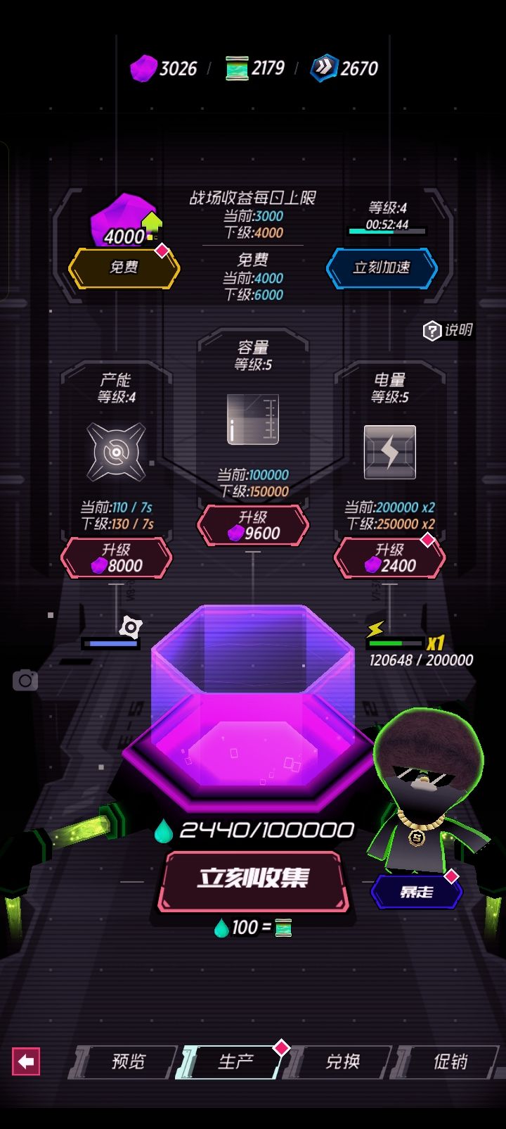 战场收益升级完后,是升产量?还是升电量接暴走,我算过了,今天只能升一样#战斗少女跑酷