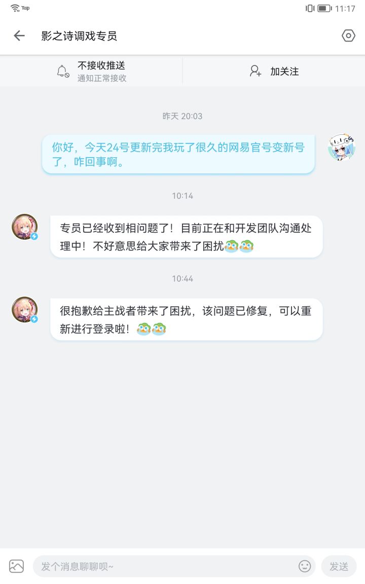 今天更新完我玩了很久的网易官号变新号了,咋回事啊。你这可是恶性bug