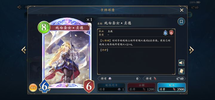 接上文,节奏上很重要的一环就是手里有解场卡的情况下,可以尝试逼对面交超进化解你,你反手扫了或者用超进化反解。5.关于架墙。这里要熟悉各职业过墙手段,以及法师墙的情况。首先,墙什么时候架?这里指的是例如后面超进化回合摸到双姬,对面没场面,是否要压的问题,或者拍久苑架墙。最简单的,主教拍了炽天使,纹章返回的那回合前要架墙(虽然大概率被贞德入场a6秒了)。墙主要计算挡疾驰伤害,对于皇家,高于3血能抗一