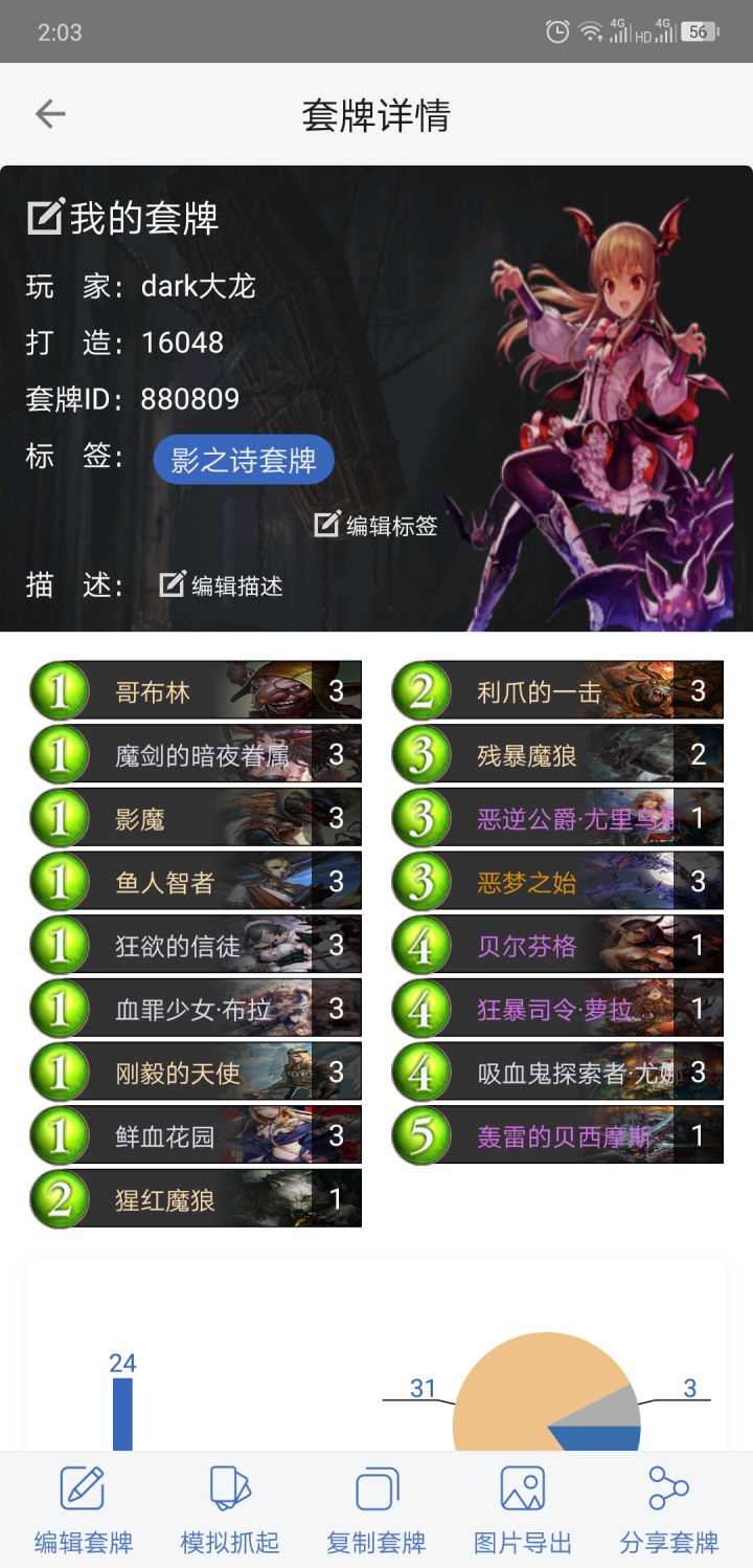 居然上首页。。。了。。分享给新来的萌新一套低尘鬼无限套牌,指定玩家就可以pass了思路就是起手留至少一张噩梦开始或者尤娜,没有就没有。。。倾泻手牌,然后打脸打脸打脸。。。先手优势卡组,而且铺场效率比较高,最快5费可能就斩杀。进化点给伤害,打脸优先,解了对面的脸对面就没法下怪了。几个虹卡应该都是送的一张,综合还算便宜。。