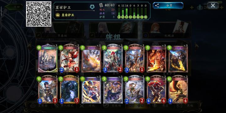 时光荏苒,《影之诗》国服终于来到了荣耀再临版本。暗夜伯爵和主教一跃成为指定两大T1。从整体上看,此包的卡牌设计是偏向保守的,除皇家新加入的雷维翁体系外,其余均为补强。今日推荐的,就是指定中的雷维翁进化皇。如您所见,这套牌是没有6费的。笔者曾经想过携带6费卡牌,但兼容性不高并且会减少核心牌的上手率。可是殆害无穷,费用的利用率大大降低,正常对局中的节奏把控可能难度较高。但此处仍不推荐携带6费卡牌。除