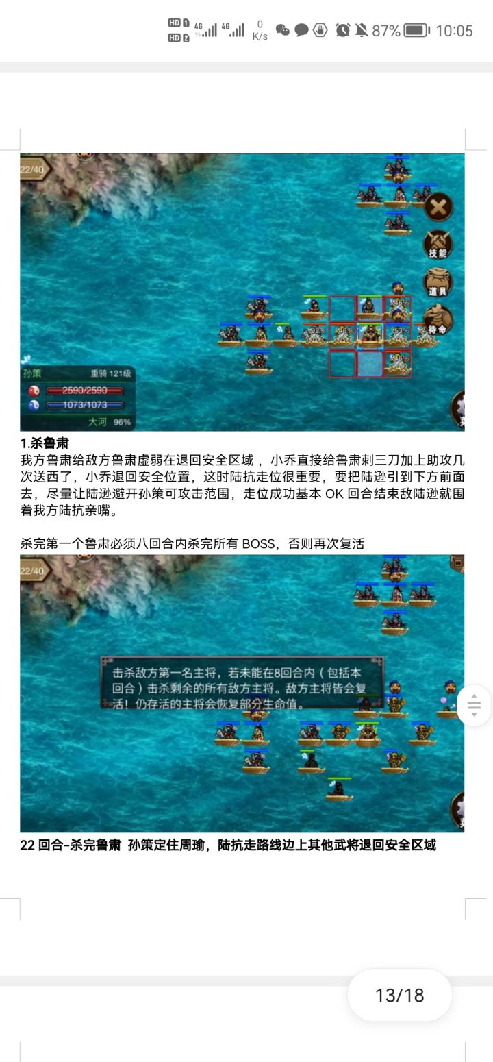 论XX%战与全地形的特殊叠加关系前置条件:当全地形能力和单个地形加成在一起时,计算方式不是单纯的相加,全地形会倍数乘二总地形=基础地形+(xx%战+2倍全地形)特殊装备:全地形三尖刀真白羽扇二属性洗地形加成、威青服和牧笛搭配等例:1.实战过曲阿最后一关中文鸯带了三尖,陆战能力加40%,在小树林直接单挑赢了谋身15且带虎贲的boss吕蒙 如下图一二三2.因为孙策自带18%水战,所以只需