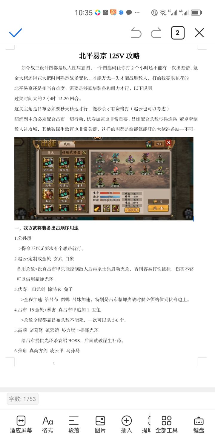 如今战三设计图都是反人性病态图,一个图起码让你打2个小时还不能有一次出差错,氪金大佬还得花大把时间熟悉战场变化,才能万无一失才能战胜敌人,打的我亮眼花花的北平易京还是相当有难度,需要足够豪华装备和耐力才行,以下说明过关时间大约2小时 15-20回合。这关主角是吕布必须要秒天秒地才行,能秒杀才有资格打(赵云也可以考虑)貂蝉副主角必须配合吕布一切行动,伏寿加速也非常重要,吕妹配合杀敌弓兵炮兵 董卓牵制