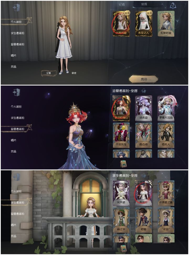 《第五人格》也是个老游戏了,早期虽然我也玩过,那会甚至还怪勇的。直到我退游了一段时间后试图回归找朋友一起玩的时候,突然就怂了,多出了好多不认识的监管和求生,而我还只会空军修机开一枪跑路,死了活的统统只管跑。这个游戏虽老,但是期间好像也有不少故事变事故的事情,具体什么情况我不清楚,因为我压根就没追过这些瓜的具体情况。这次回归,拿了进大学后开的新号,那会刚开出来就氪了几千,然后深深地爱住了渔女的金