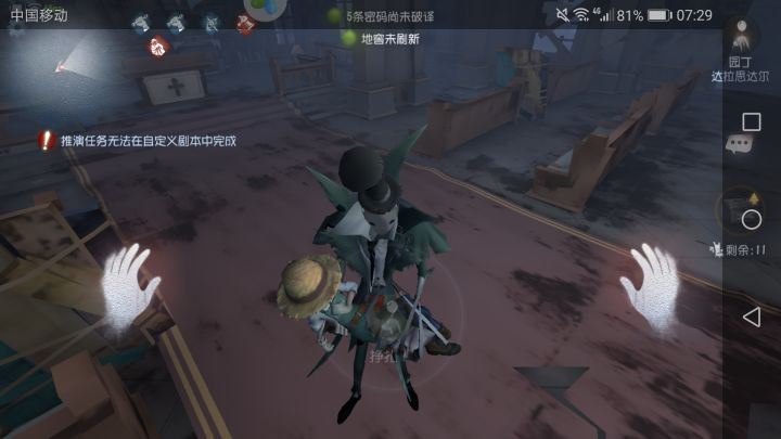 人物1.园丁 推荐不要老是拆椅子!拆两三个就好了,只拆不开机真的烦òᆺó而且,失常了解一下?蜘蛛了解一下?放血了解一下?萌新喜欢炸机,但园丁的判定真的超友好,不容易炸机。2.医生 推荐萌新路人局真的一局都找不到队友,被砍=凉凉。但……我们有针!有针就是为所欲为!医生=被砍+自疗3.慈善家 不推荐这个人容易炸机,判定对萌新超不友好!手电筒也不好用,需要一定的技术和磨炼时间。好在加速翻窗
