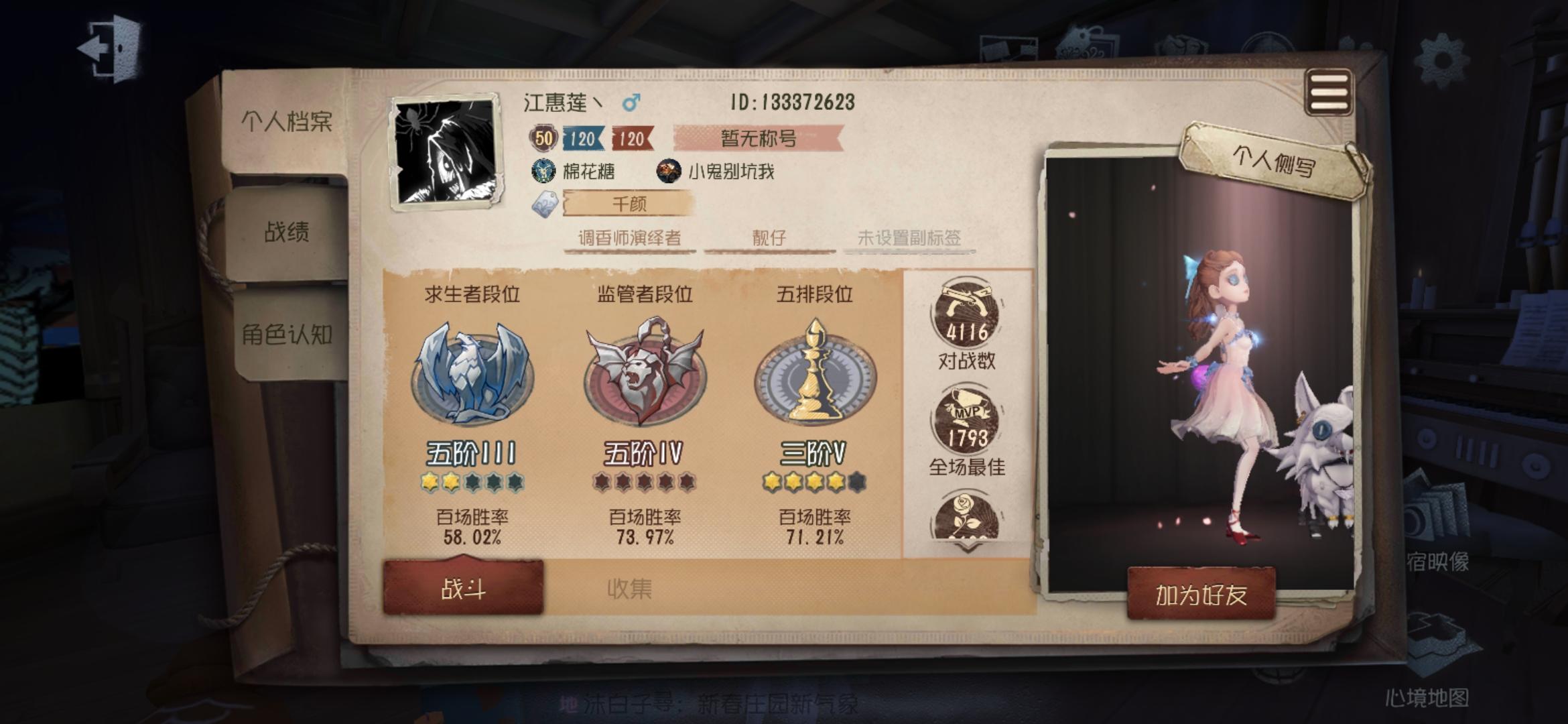 一直玩求生,没怎么玩监管。攒了些体验卡,想着熟悉一下监管者的玩法技能,玩了把红蝶,玩了把约瑟夫,玩到鹿头的时候停不下来了。。