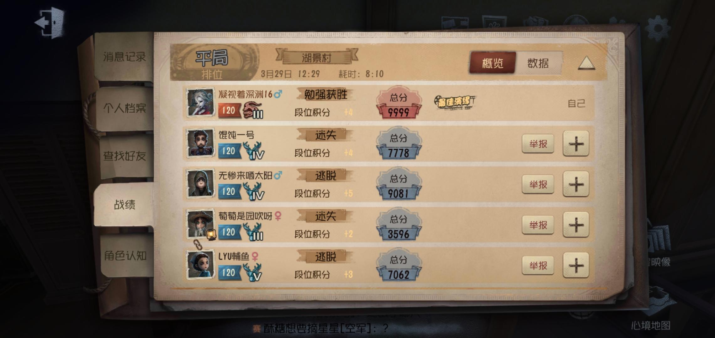 今天中午用小号玩了一把屠夫(但是主玩人类),由于没怎么玩过屠夫,所以前期被一个3000多场的咒术师给虐惨了,但是呢,后面本来要平的,咒术师它那边门本来是开着的,可以走的,但是非不走,当门皇,要来救人,没救下,被我打死了。 赛后我说“他很秀”,没有别的意思就是觉得他很强,但是他理解错了,就说我“雾刃打的跟s一样”。当时我完全😓了。所以讲真的,有些求生者玩家是真的素质低下。