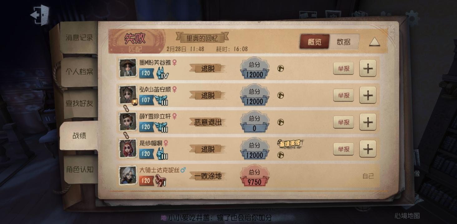 本来开开心心等到宿伞加强,开自定义练好手感,准备打排位。然后这玩意第一局就给我卡,全程红,爷还坐在路由器旁玩,玩你马呢😊😊很多主播已经退游了,还没发现为什么?祝d5人格再接再厉,再创“佳”绩。