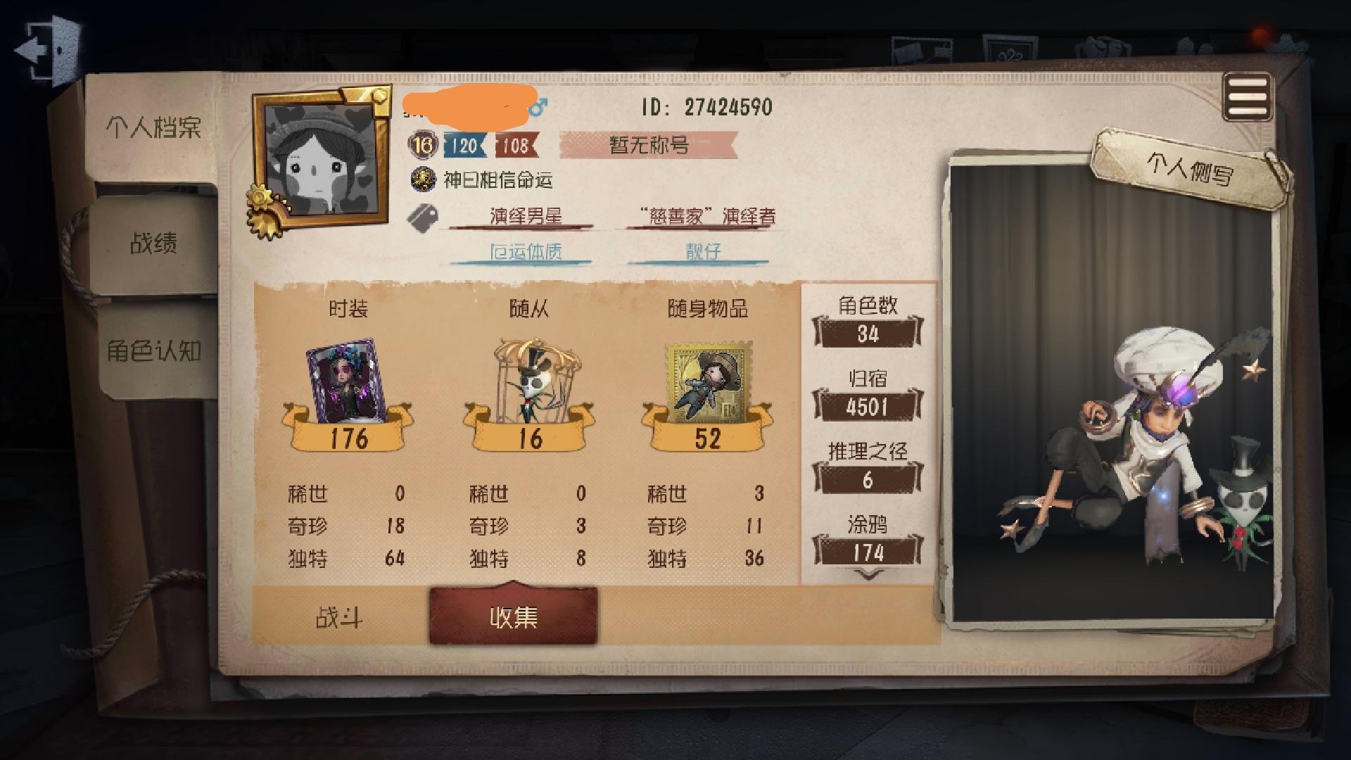 我玩的俩号我主玩求生者,看我人格等级就知道了