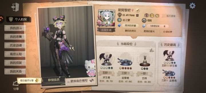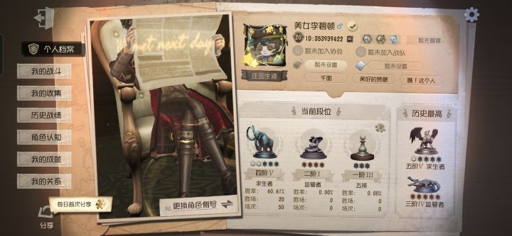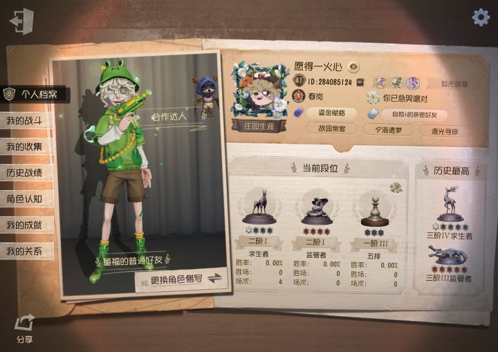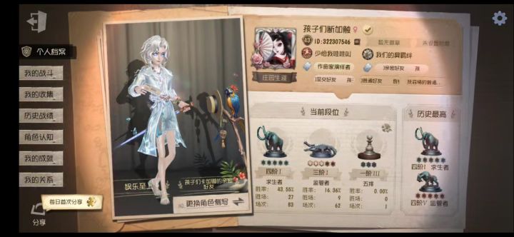 #第五人格 id啫酸目前段位四阶五,找双排可以先磨合试一试匹配最好作息点差不多本人承德高中生三周放两天