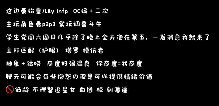 本人比较佛系不会压力人,想找一个经常在一起玩排位的,空余时间也可以打打其他模式,拍照都可以,不卡技术,我自己也会打出很多招笑操作,主打陪伴😋