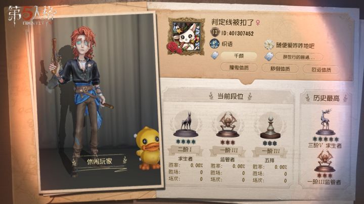 固定晚间排位时间,三把低保拿完就好,多打的话最晚到晚八最近在玩心理和双弹搏命机械师,希望找段位差不多的救人位双排,两个搏命一套基本上是平上的节奏女生,可带麦,qv都🉑,打菜了会嘲笑或者自嘲,没有压力的意思#第五人格 #第五人格固排dd