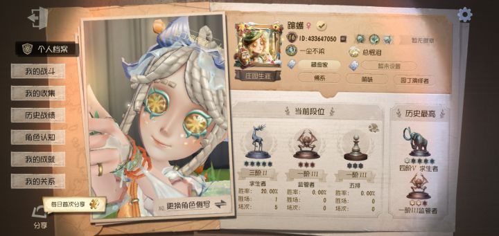 人为关人为官服渠道都有账号。如果有人想陪我玩的话,可以告诉我你的ID吗?目前,本人三阶半,监管求生都是,中学生晚上上线#第五人格