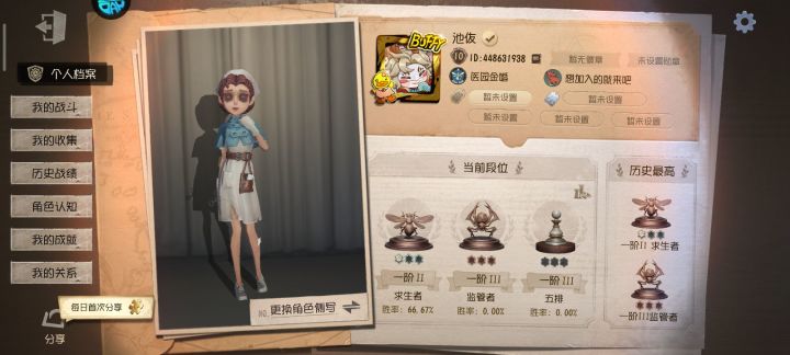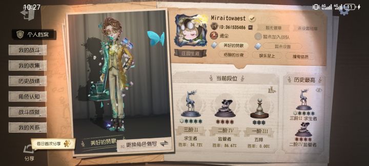 #第五人格 找一个固玩 退游一年多了 之前最高三阶 现在监管玩渔女 求生玩记者