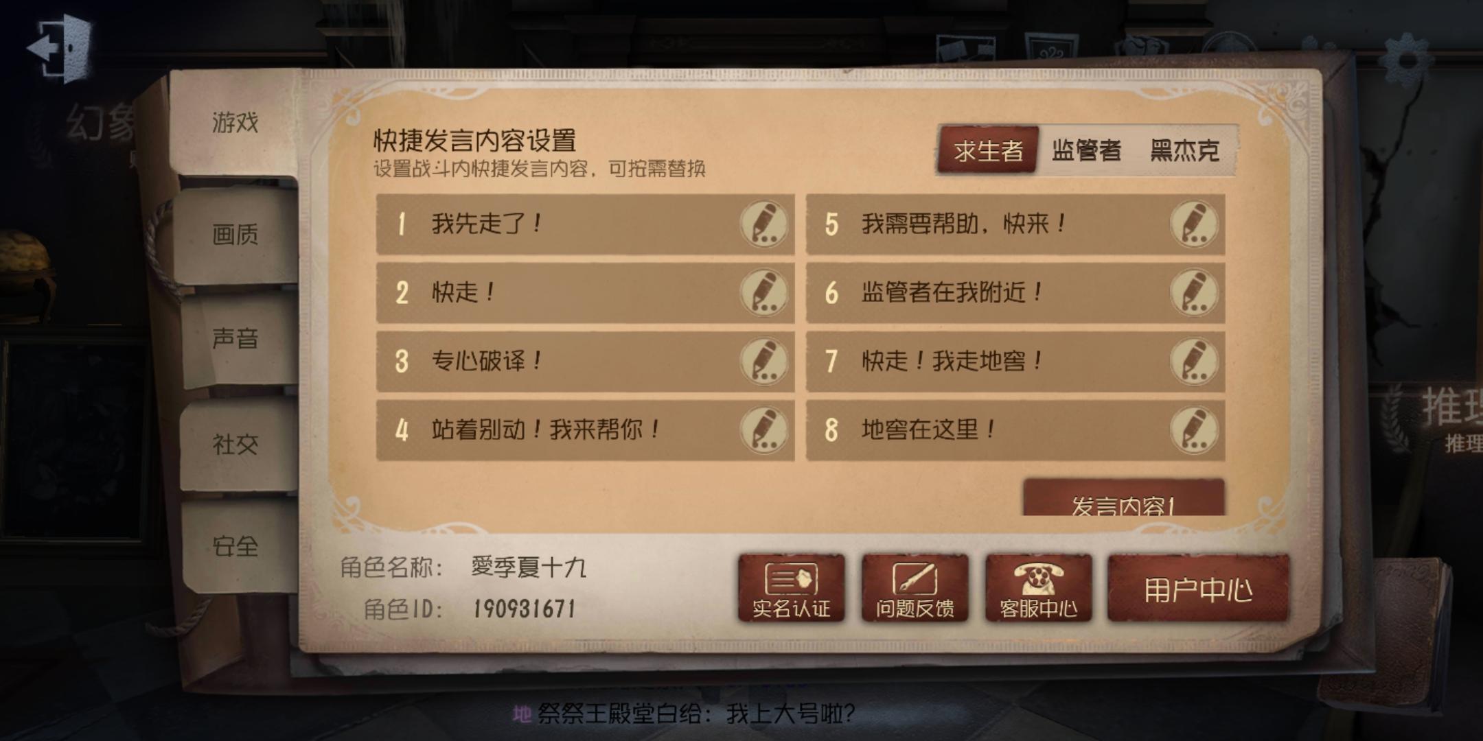 本人二阶,水平较低,今天进行了一把杰克的排位,因为平常不用这个角色所以带的玫瑰手杖没换,军工厂,开局被舞女在三个板区用音乐盒拖了一段时间,然后追舞女的过程中发现了囚徒转移了追击目标,囚徒两挂的时候我用雾刃加普通攻击收掉了来救人的野人,然后调香这时候无伤救下了囚徒,囚徒在大房拖了我很久,我因为有点急了就一直在追他没管门,最后三出,游戏结束后调香就开始嘲讽,说我魔系还带手杖ex,嘲讽我操作菜让她无伤救