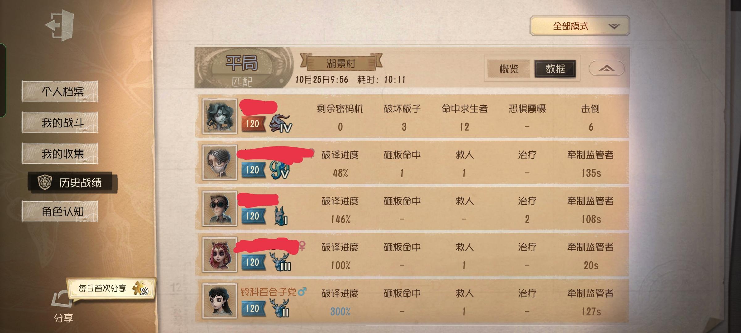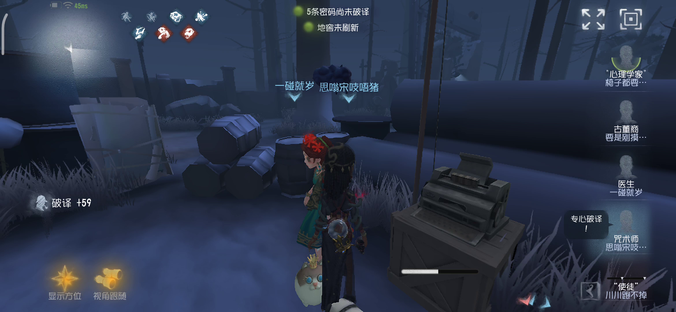 好久没玩这个游戏 感觉改良之后体验感不一样了 以前最喜欢玩的红蝶小姐姐 现在变得好难哦 但是相信我练成之后就会变得熟练了 求生者最喜欢佣兵啦 我喜欢救援位 很刺激 有很有成就感 怀念以前的第五人格 也喜欢现在的第五人格 体验感不一样了 第五这个游戏我真心推荐大家玩 真的真的很好玩!!😜😜😊😊😊新手 建议还是要打完游戏里的新手教程 慢慢上手 我刚开始就是没有学完就开始打匹配 每次都被抓也不知道往哪