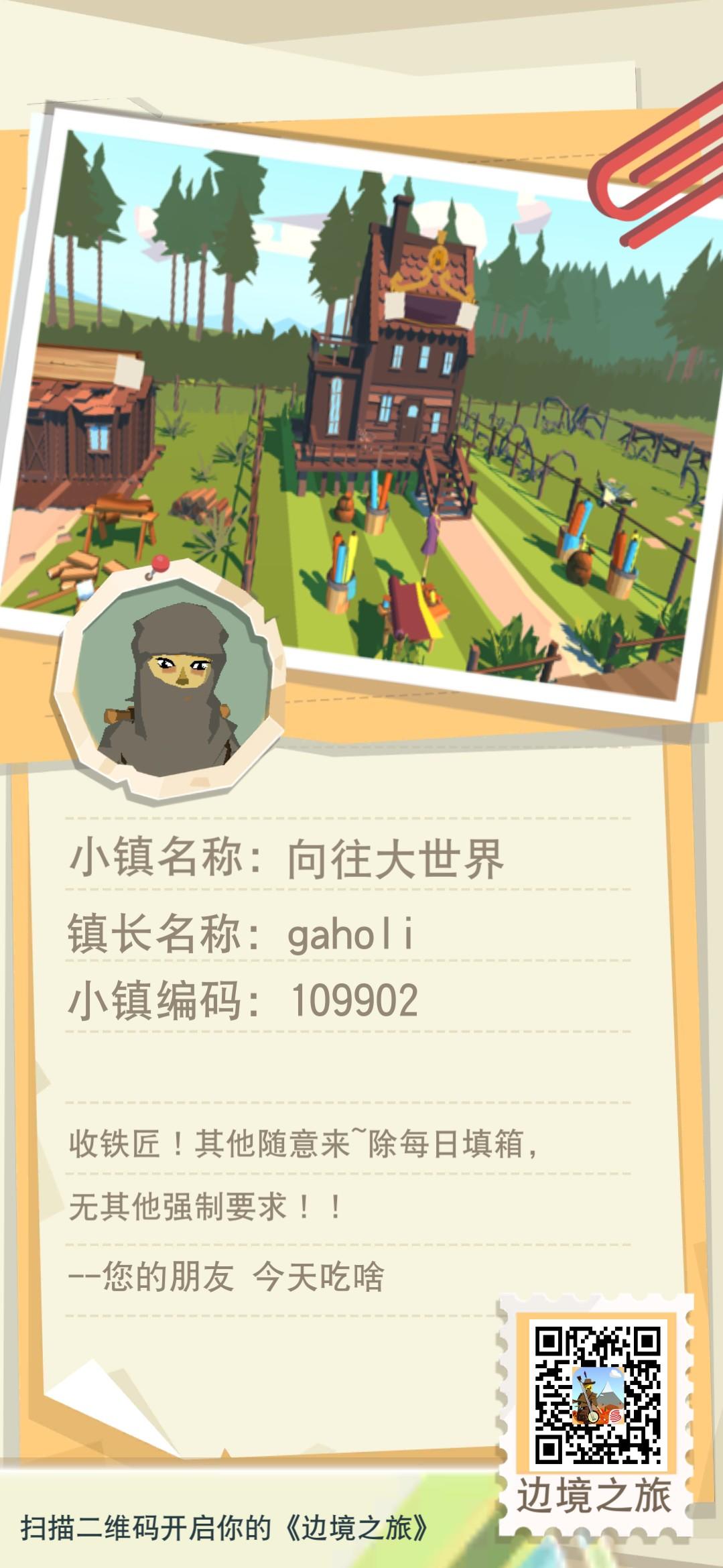 【求个做猎弓的木匠!!!】8级小镇 龙 102901小镇有群 ,工具衣服稳定提供,唯一要求每日填箱,小镇氛围好,有兴趣的可以先看看小镇。