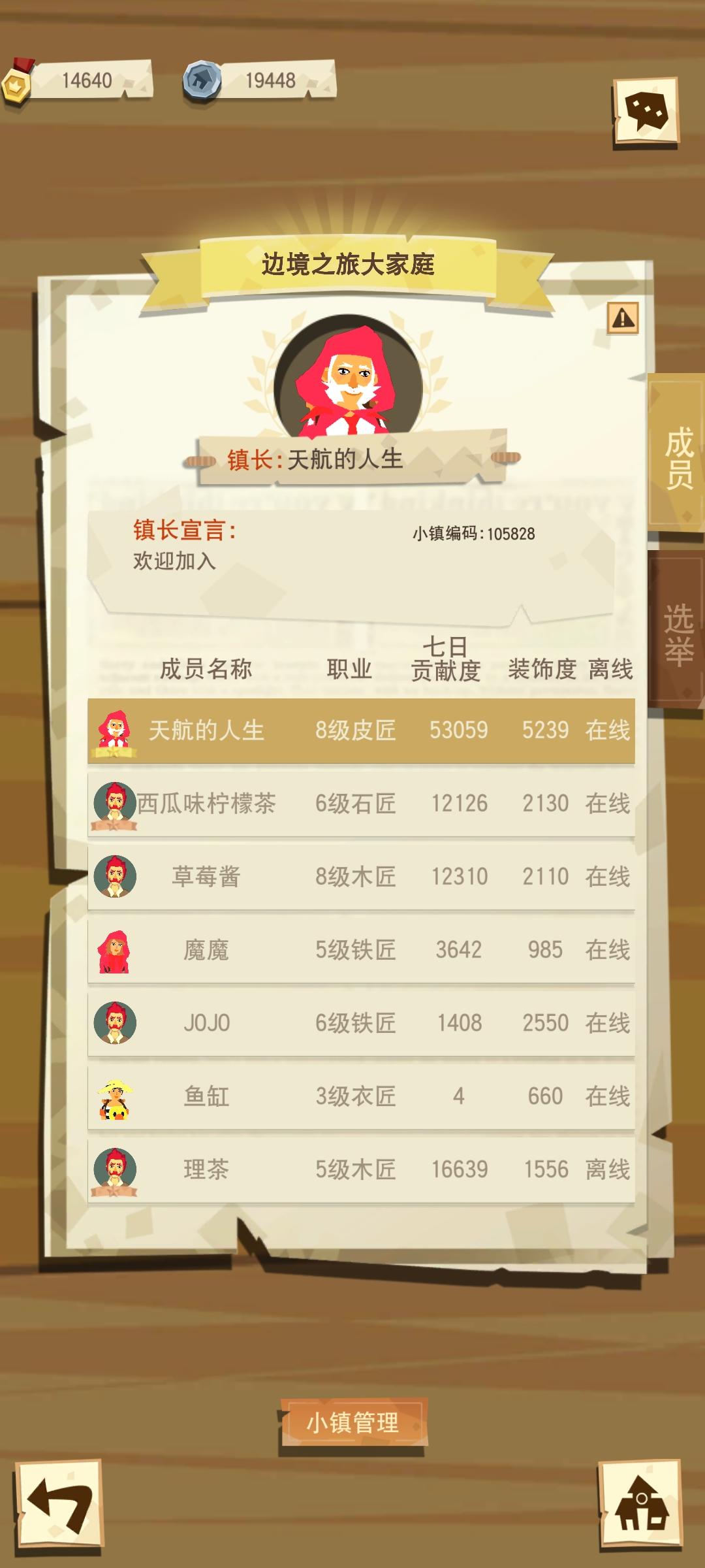 还是我,小镇收人其他职业已经平衡发展 欢迎加入有两个位置只需要填箱子就可以就少一点资金升级仓库3满食物我家随便拿记得点赞(PS虽然不缺食物,但是还是欢迎来我家做客)欢迎大佬肝帝有群978203251(不仅仅是小镇群还是边境之旅聊天群有老版本大佬和新版本探索者)小镇名字是边境之旅大家庭105828小镇号邀请码a066a872a681邀请码76f120328011期待你的加入