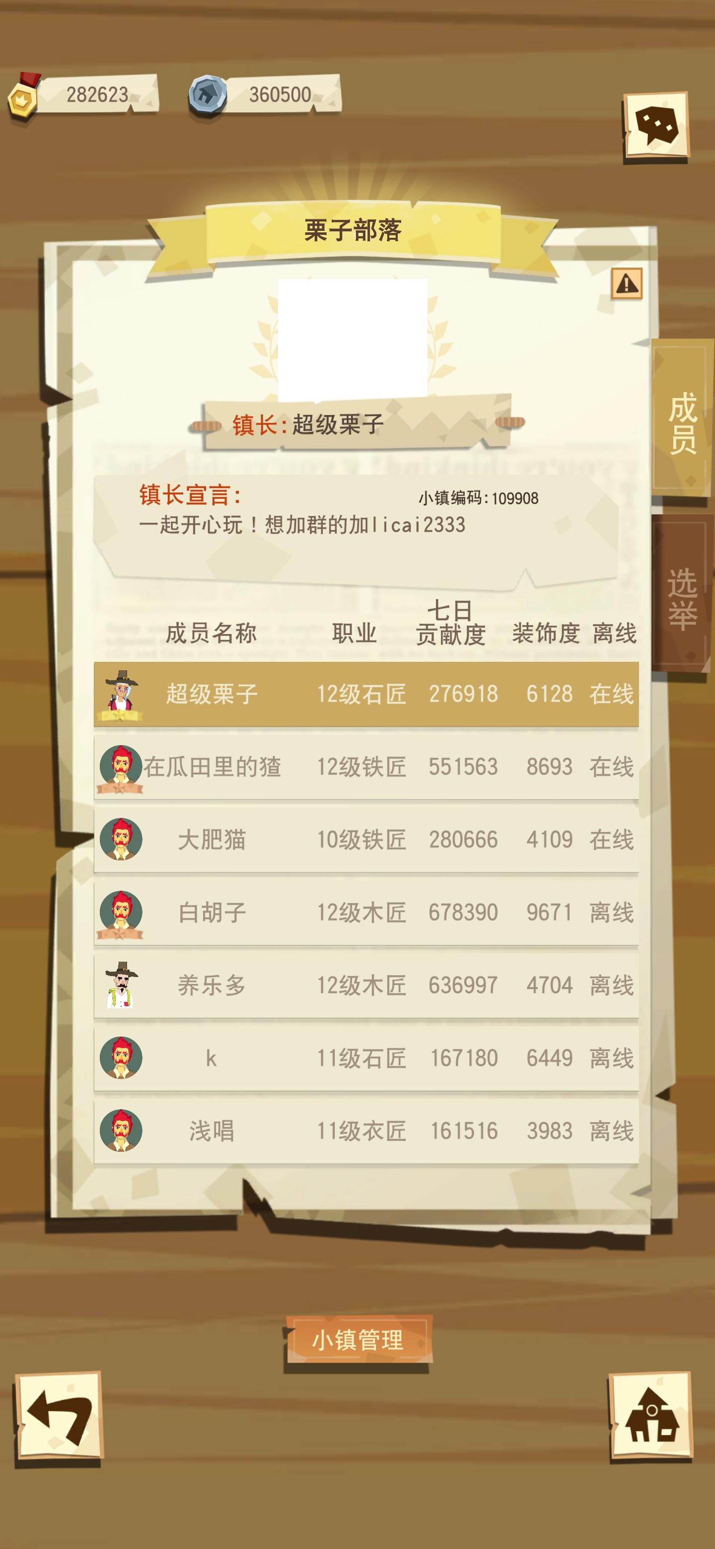 编号:109908名称:栗子部落可加群可不加(目前第二肝帝没有加群🙈就是纯爆肝)小镇5级且和谐(皮匠只有我的小号在占位子哈哈哈哈)大!招!人!快乐养老休闲爆肝都可以!退游说一声就行🙆