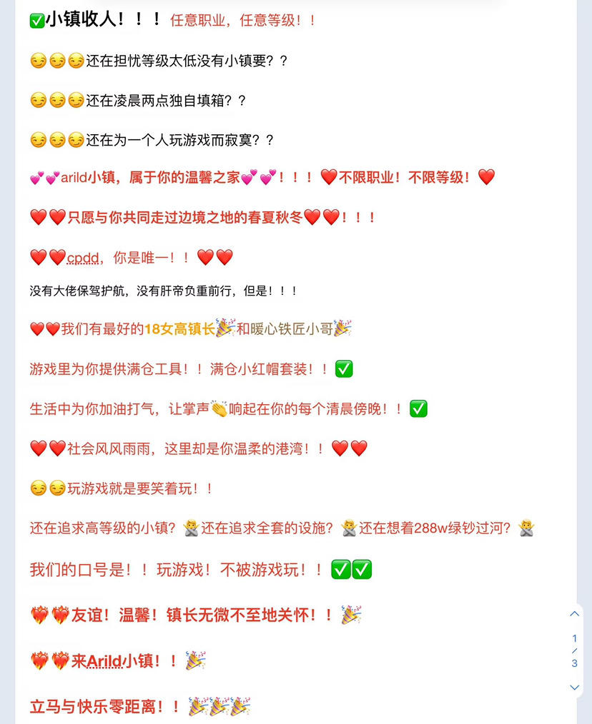 小镇已升7级,招铁木石各一位。我个人因学业原因退出小镇,但我们的小镇真的非常好。没有任何硬性要求,最好填点箱,小镇居民为人正直,待人和善,来了一定有你好果子吃。镇里都是大大的良民,并且都是些阿猫阿狗。错了,是养猫养🐶的花姑娘,还有几位69岁扶墙喝奶的老奶🐶,各位太君美姬快快的进村🌹😘😏😍,如果不满意镇长性别,可以把镇长送到泰国,如果想要玩具工艺品,请在群里每天@老阿姨,老公公。并且群里的人个个都是人才,会跳修勾舞,会唱小星星。最后,我曾是镇上的福星,跟我玩飞镖的人无一不拿到了数10颗蛋糕,每次洗石都洗出了好几个红孔雀。现在我要走了,他们都痛苦万分,每个人都扒住了我的裤腿🥺,声嘶力竭让我不要走,甚至我养的三小狗都流下了真挚的眼泪,尤其是我捡的叫唐轩的那条流浪狗。天下没有不散的宴席,我终究要去面对我的学业和生活,但是我相信会有下一个福星庇护着我的儿孙们,没错,下一位福星就是你,快来加入我们吧,修勾们❤️❤️❤️❤️❤️