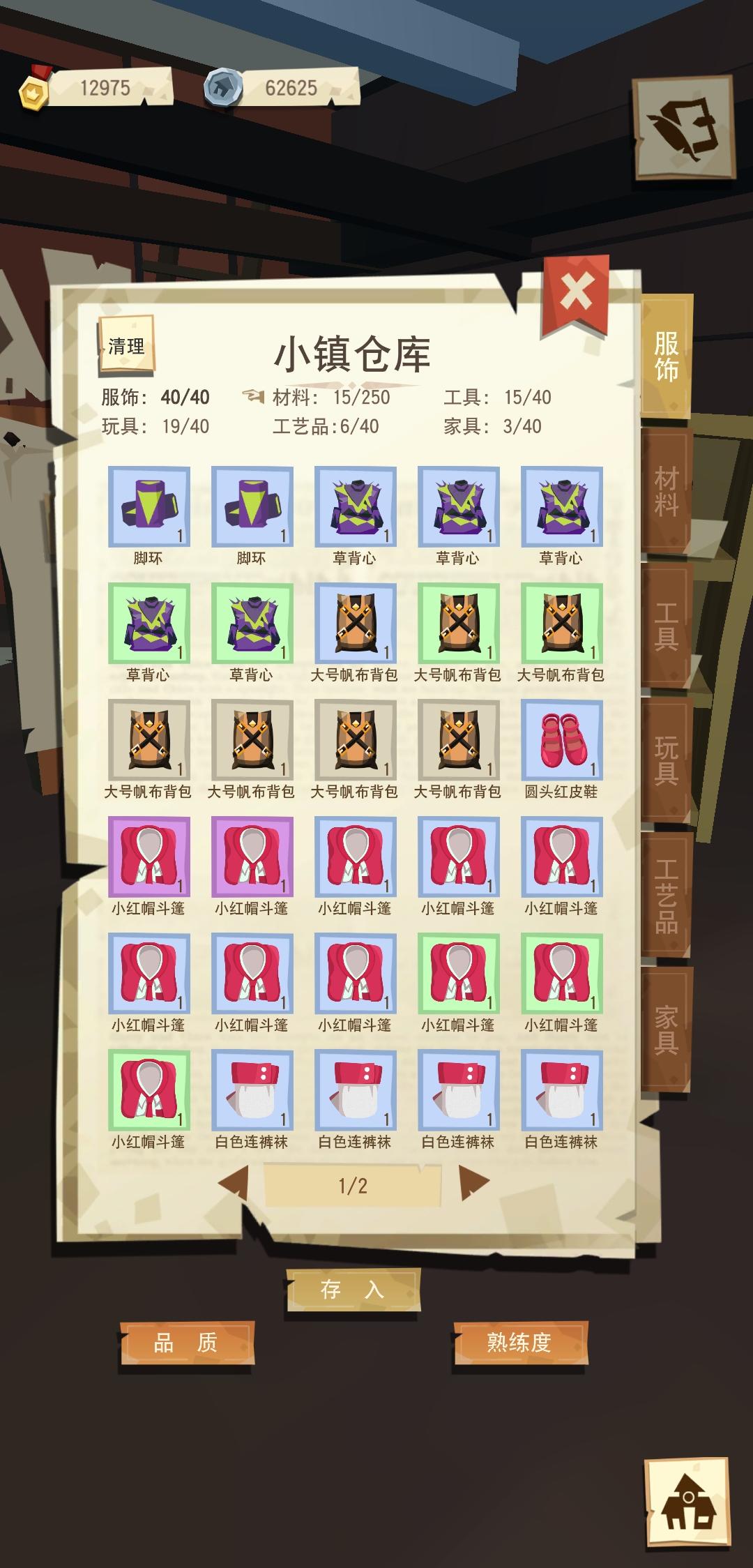 4级小镇收人,最好是皮匠石匠,日常活跃填箱即可,镇里有5星家具衣服,可以填仓库互助。