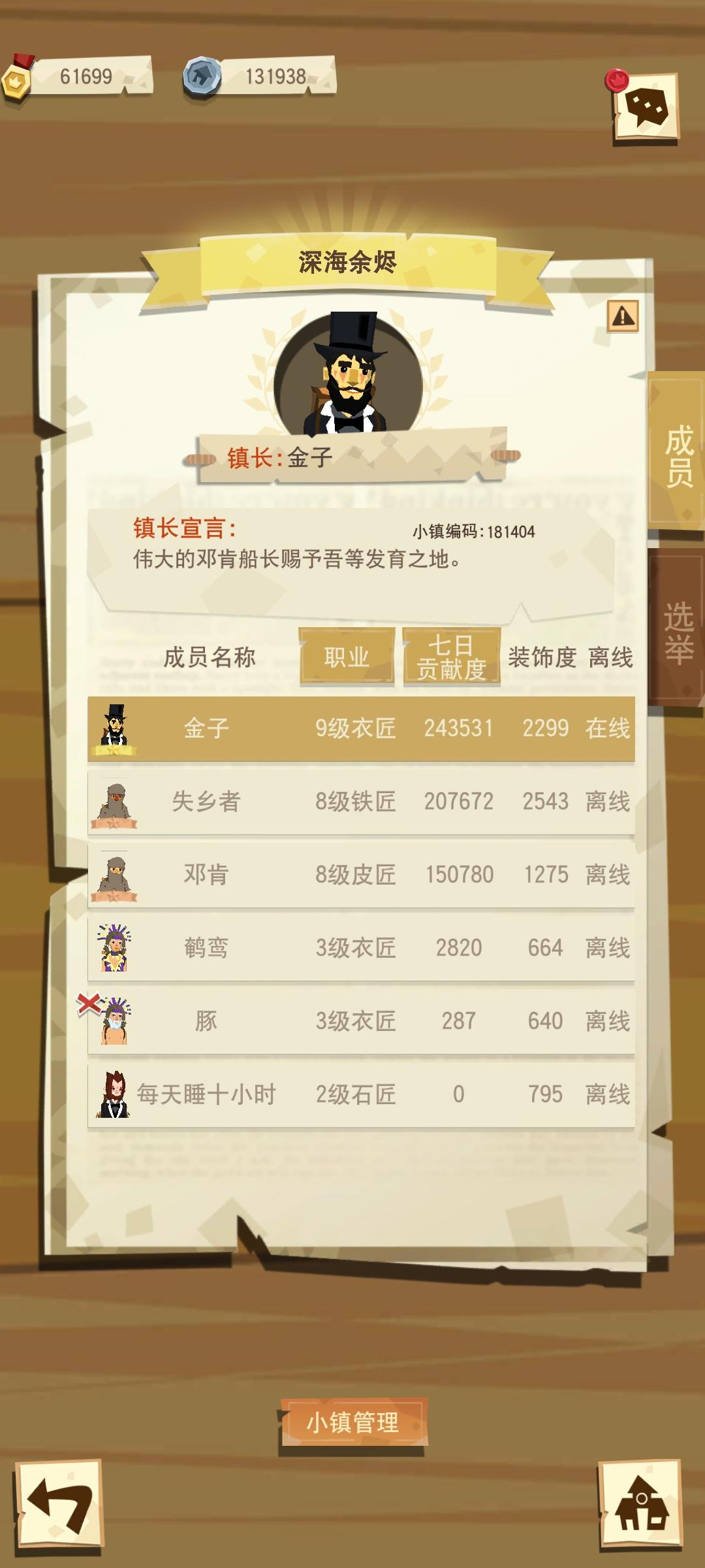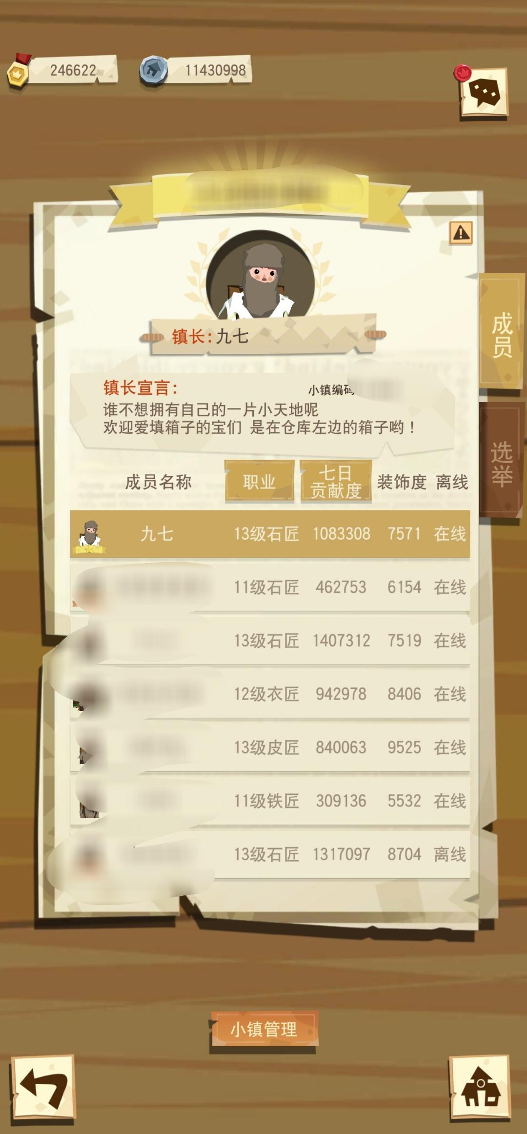 有两位置,一个留给木匠,另一个不限职业,能填箱加微信群就行。本小镇8级,18人,3铁,4皮,3衣,7石,1木。全活跃。石匠会捐工艺品,皮匠会捐玩具,工具衣服多的需要清理,只希望来个木匠能做点弓给皮皮们打羊,互相帮助一起过河,没有人太领先,也不会有人太落后,全小镇都过了288,半数左右过了900,另一个木匠伙伴比较忙,你来了你就是小镇里最靓的仔!!有意的话请加v:yewei325