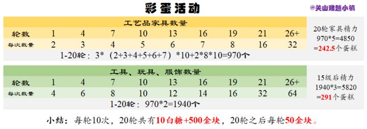 【彩蛋活动】每轮每次所需数量(仅供参考)1.1更新
