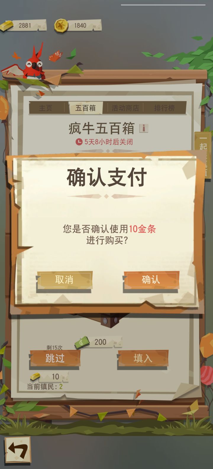 大家好想问一下为什么500填箱活动,跳过还要收金条呀