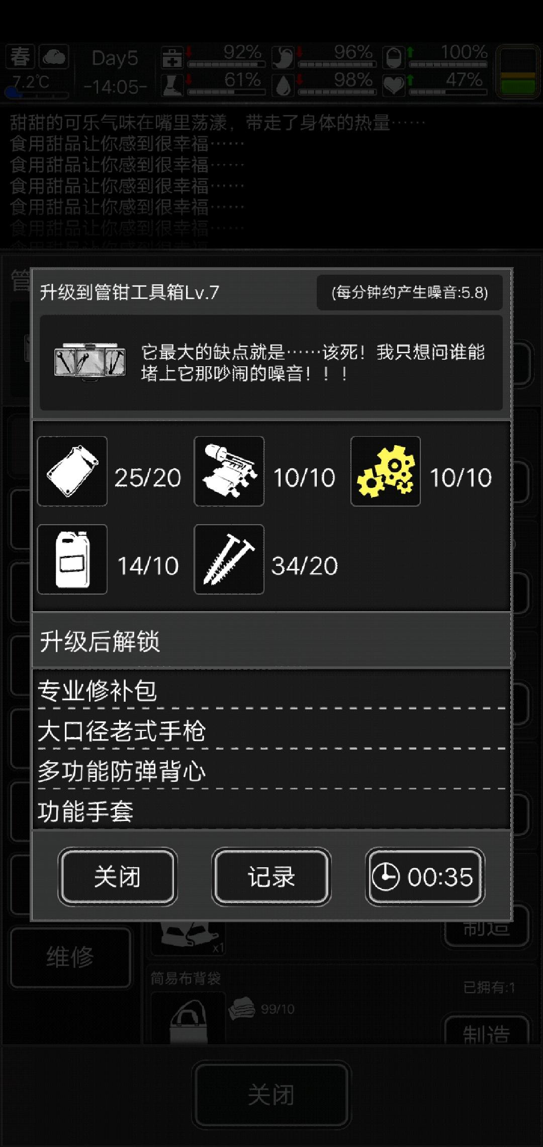 准备:木棍或者铁管,根据耐久算好需要多少,个人推荐铁管,耐久比较高,可以少做一点。武器配置:木棍或者铁管,加特林,血网,可以带上正常防御,增加容错。思路:随便找一个四阶或者五阶的尸潮,然后找到腐浆(四阶怪)或者噩梦吞噬者(五阶),把它用网控在第二格,一直锤就行。如果想省网,打腐浆比较好,脱网率低,而且前进行动力耗费更多。如果来小怪,加特林清一下就行。如果失误怪进到第一格,切网后退一下。作